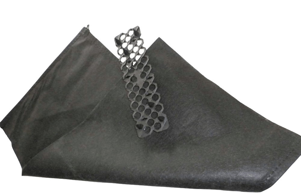 强度高,耐久性好,土工格栅网格中的土石料互锁力提高,摩擦系数提高,促使生态袋护坡能够获得良好的强度和耐久性,起到固土、抗冲刷的效果。