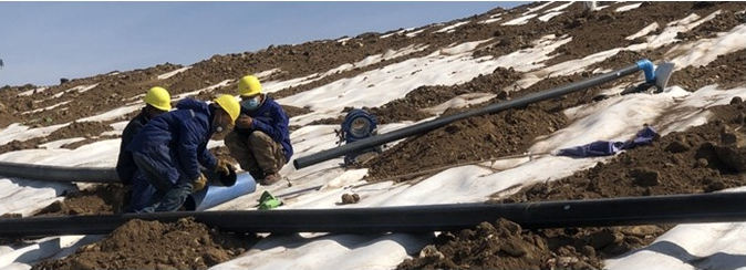 焊缝宽度不够、焊缝平顺度差是HDPE防渗膜焊缝的两个主要质量问题。为了提升焊接质量,公司安排技术管理人员多次到 HDPE 防渗膜生产厂家观摩学习,组织焊接人员到防渗膜生产厂家培训,邀请防渗膜生产厂家的技术员进驻现场指导,共同讨论提升焊接质量的因素,经过综合分析,归纳出影响焊接质量的四点主要成因:一是下承层平整度不满足要求;二是防渗膜铺设时接缝位置不合理;三是焊接前未清理干净防渗膜焊接面;四是焊接方法有待改进。