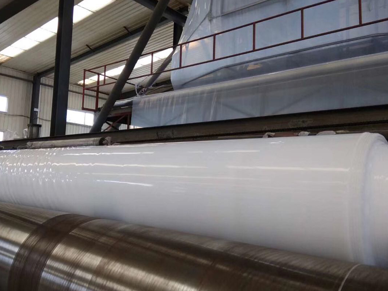 土工膜与管道的连接:连接部位的管道宜选用聚乙烯管。首先把HDPE土工膜根据管道的直径大小裁剪成圆形的管套,调整好管套的位置并用热风焊枪临时固定,管套与管道间不能有空鼓的部位。然后把管套两端分别焊接在HDPE土工膜和管道上,后用不锈钢管箍固定管套。
