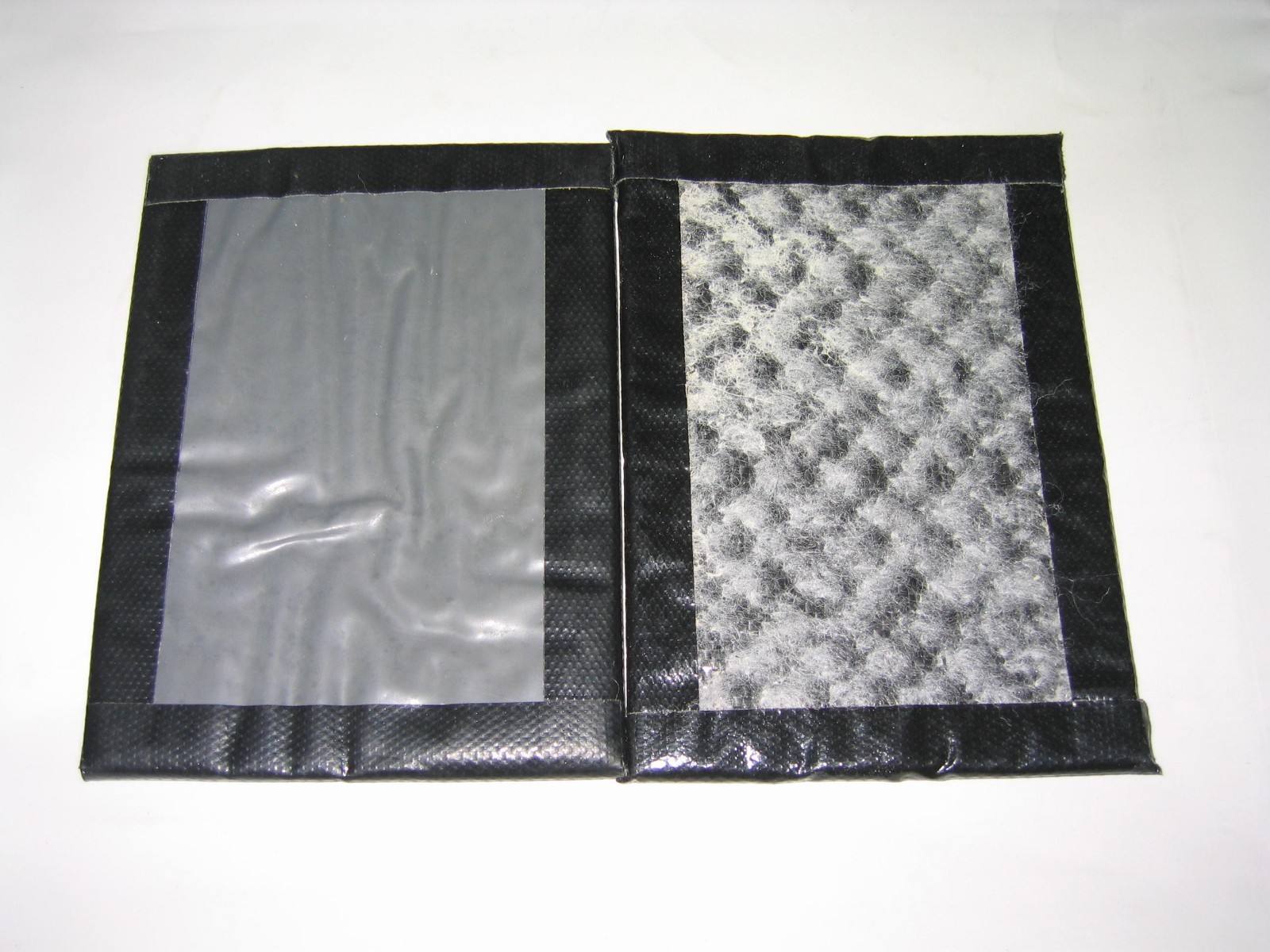 9、如果膨润土毯在安装过程在损坏(撕裂、刺穿等),可以从一卷新的膨润土毯上切割一块“补丁”盖在破损的地方来进行修补。补丁的四边距离破损的地方长度不能小于300mm,铺放“补丁”前应在破损周围撒一些颗粒状膨润土或膨润土浆。如有必要也可以使用一些粘合剂以防止“补丁”移位,或者在破损的地方下面垫一小块膨润土毯。