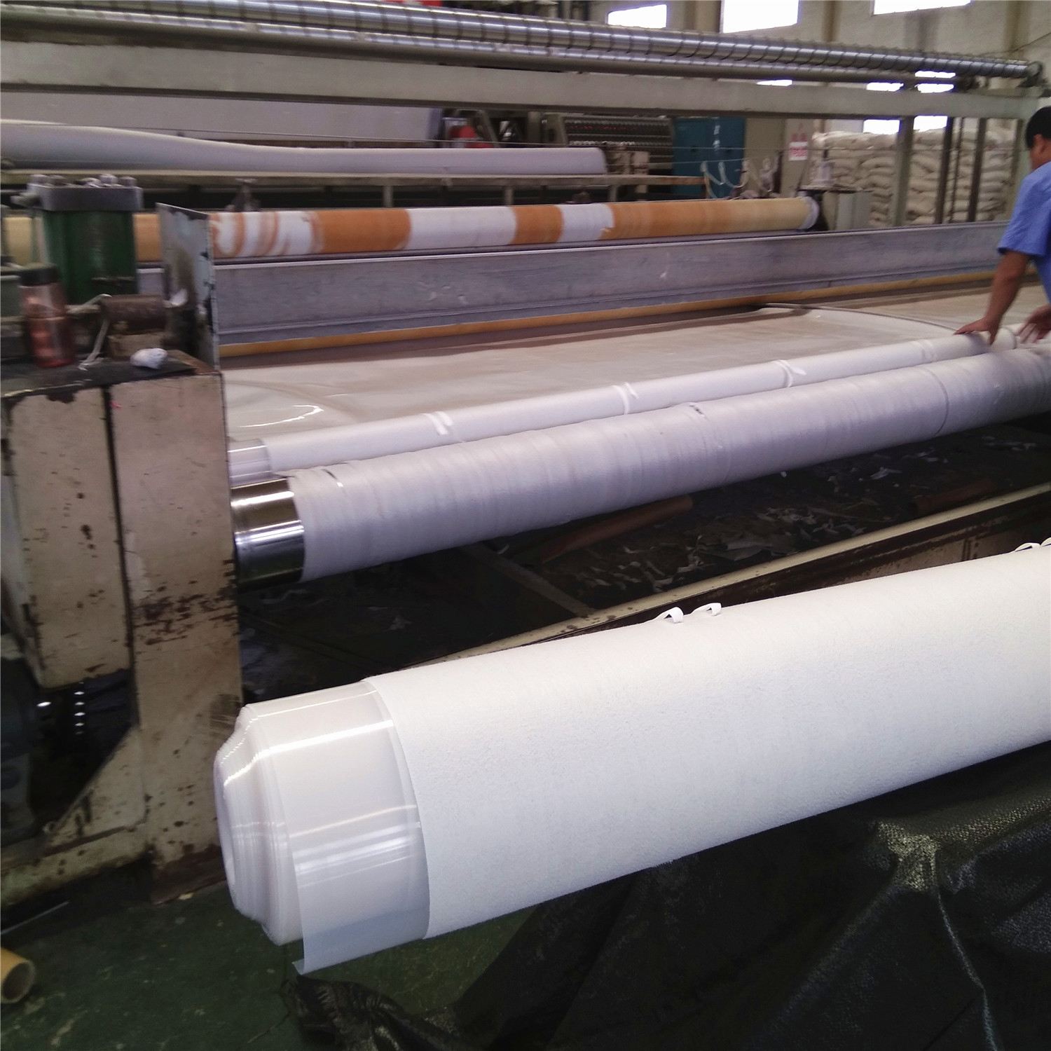 2、根据池塘的长度和宽度,跟我们厂家提前预定好防渗膜的尺寸,以便于施工,土工膜一般采用高温加压焊接的方法连接,但是当温度不够高或加压不足时,连接可能不牢固,在风的作用和紫外线的照射下,搭接性能下降,最终导致搭接的土工膜剥落。工膜铺设在开挖衬砌成型的水池池壁和池底上,形成完整封闭的膜防渗系统。